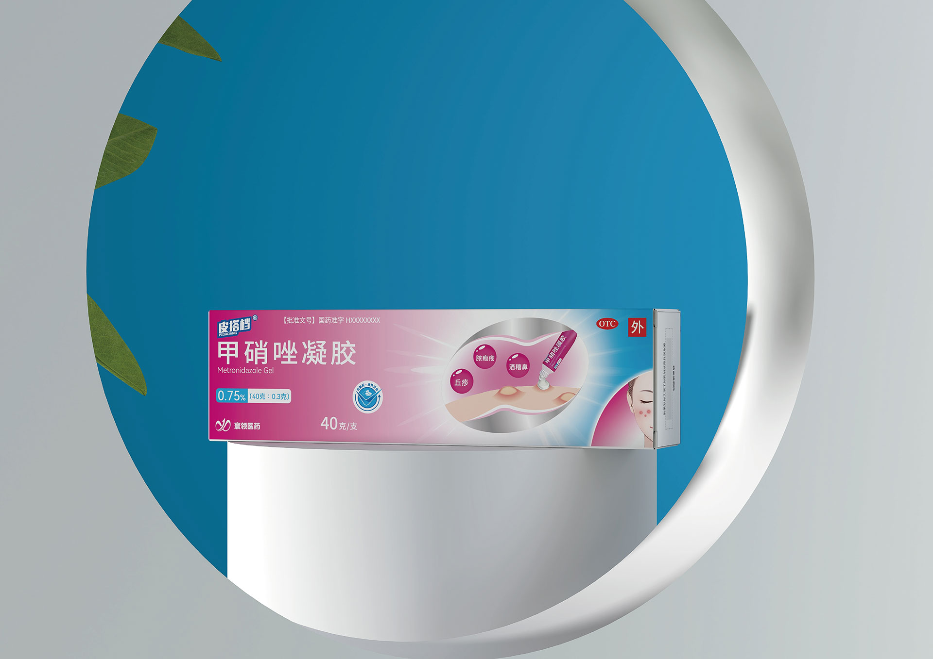 甲硝唑凝膠小盒:尺寸145×25×40mm,推薦燙銀工藝,銀色光澤呼應“科技藍”,提升專業精致感。